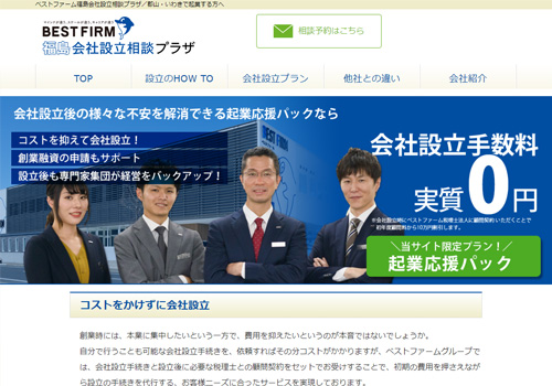 これから会社を立ち上げる方にむけた専門サイトこれから会社を立ち上げるにあたり、専門家の強力なバックアップが欲しい方に会社設立専門サイトをご用意。ベストファームグループには税理士も司法書士も在籍しています。法人登記から税務顧問までお任せください。