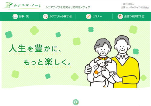 シニアライフを充実させる終活メディアサイトカナエル・ノートは全国シルバーライフ保証協会が運営する終活メディアです。各分野の専門家がシニア世代の皆様が抱える不安・悩みを解決し、シニアライフを充実させるための専門サイトを発信しています。
