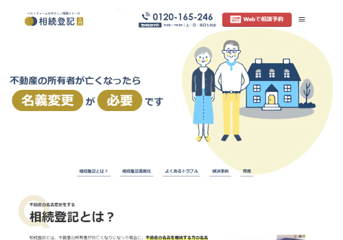 相続登記について解説する相続登記専門サイトベストファームのやさしい相続 相続登記入門はベストファーム司法書士法人が運営する相続登記専門サイトです。不動産を故人から引き継ぐためには「相続登記」が必要です。しかし、その手続きは大変難しく、複雑なものです。司法書士が相続登記をやさしく解説します。