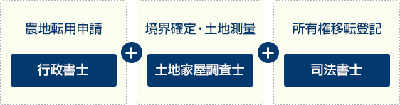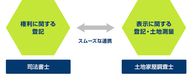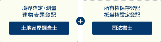 権利の登記を扱う司法書士と表示の登記を扱う土地家屋調査士がグループ内に在籍しており、土地測量、現況の調査から登記の手続きまでワンストップで行う事が可能です。