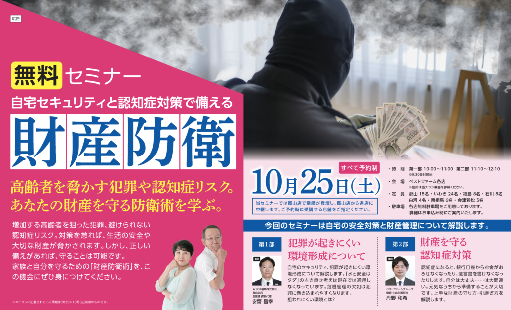 10/25(土)開催|高齢者を脅かす犯罪や認知症リスク。あなたの財産を守る防衛術を学ぶ。「財産防衛」セミナー【参加無料】
